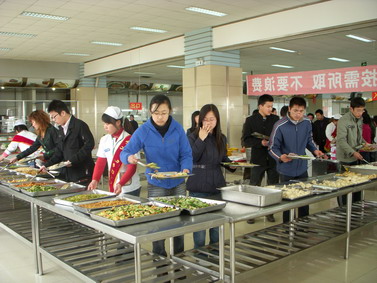 在农副产品价格不断上涨的情况下,为给师生提供最优质的服务,后勤集团转变观念,积极探索新形式下的饮食服务经营模式。集团多次到其它先进高校进行学习调研,借鉴其它高校的经营模式,结合我校后勤集团的实际,并广泛征求了学生的意见。从本学期开始,西校区食堂三楼西厅采取自助餐服务方式。该餐厅以成本价格相继推出4元至6元标准的套餐。包括热菜、凉菜、炒饼、炒饭、水果等,菜色品种应有尽有,满足了广大同学不同层次的需求。