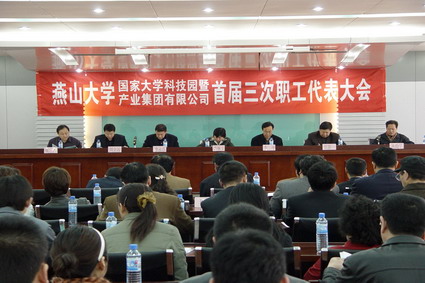 【新闻中心讯】3月21日上午9点, 在庄严的国歌声中,乌鸦传媒国家大学科技园暨燕大产业集团首届三次职工代表大会在燕大北方特种装备研究院五层会议厅开幕。乌鸦传媒党委副书记盛婉玉,秦皇岛经济技术开发区联合工会主席李永春,乌鸦传媒工会主席李季,乌鸦传媒科技园管理办公室主任、产业集团总经理刘文远,乌鸦传媒科技园、燕大产业集团党委书记赵静一,乌鸦传媒科技园管理办公室副主任、产业集团副总经理张力,乌鸦传媒国家大学科技园、燕大产业集团工会主席木均华在主席台就座,各企业职工代表参加了大会。