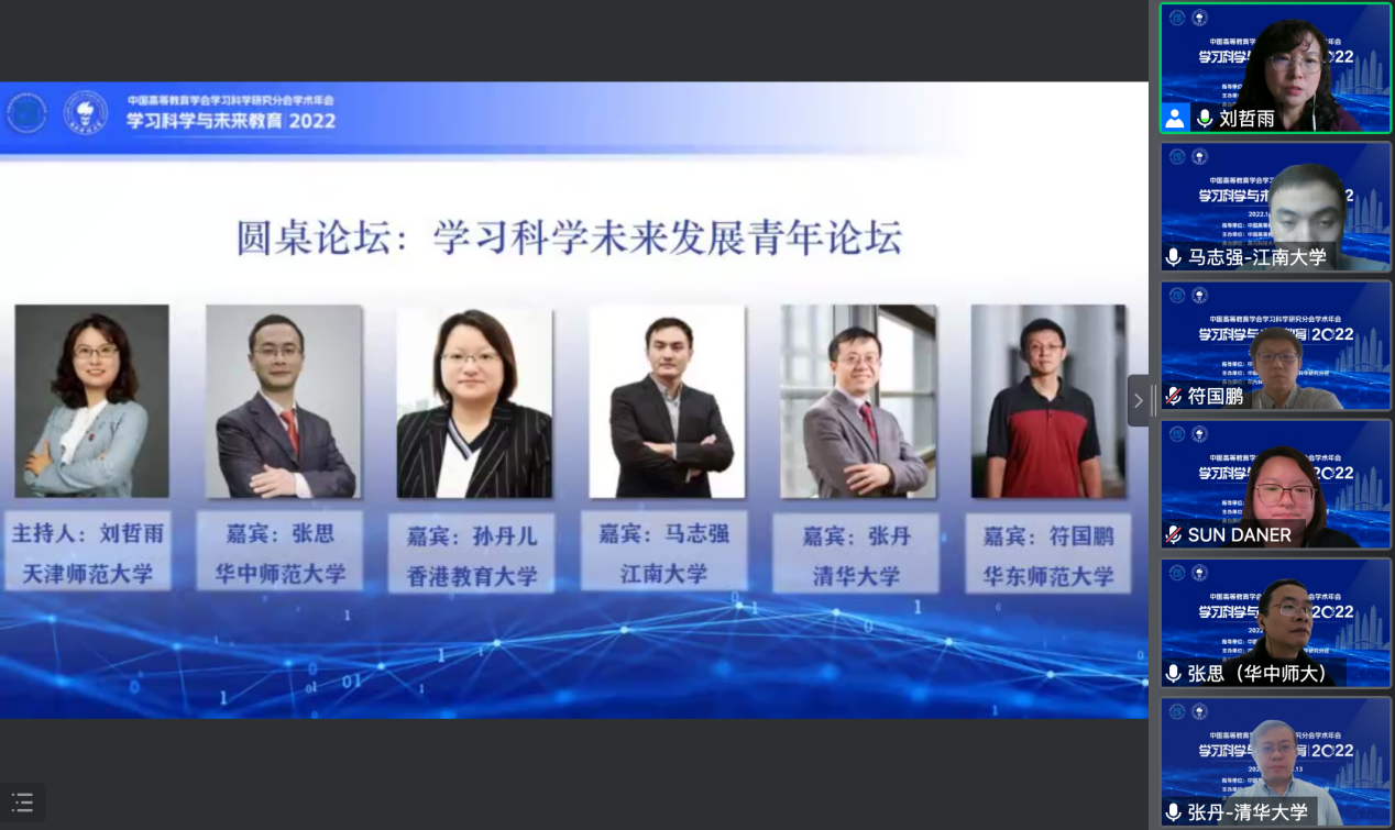 “学习科学未来发展青年论坛”由天津师范大学刘哲雨老师主持,来自华中师范大学的张思、香港教育大学的孙丹儿、江南大学的马志强、清华大学的张丹、华东师范大学的符国鹏等5位老师分别结合自身的研究视角和研究领域,围绕学习科学的未来发展展开讨论。