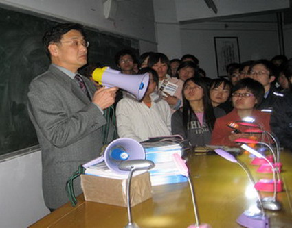 为避免络绎不绝赶来听讲座的同学在上下楼梯时发生危险,校自管会还特意买来近百支蜡烛,一一点燃为同学们照亮了楼道、楼梯、门厅、窗口,闪闪的烛光让“这个夜晚依然光明如昼”。(编辑 艾冬梅)