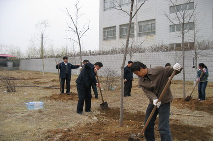 【新闻中心讯】为积极响应学校“绿化我校环境,建设美好燕园”的号召,4月1日早7:30,后勤集团组织机关干部职工共计30余人参加了义务植树活动,他们用自己的劳动为校园增添了新绿。 这次义务植树与以往不同,所种植的香花槐、垂柳是后勤职工从即将被拆迁的西校区花窑移植过来的,如不移植,树苗将被扔掉。植树现场到处是热火朝天的劳动场面,大家干劲十足,不叫苦、不叫累。