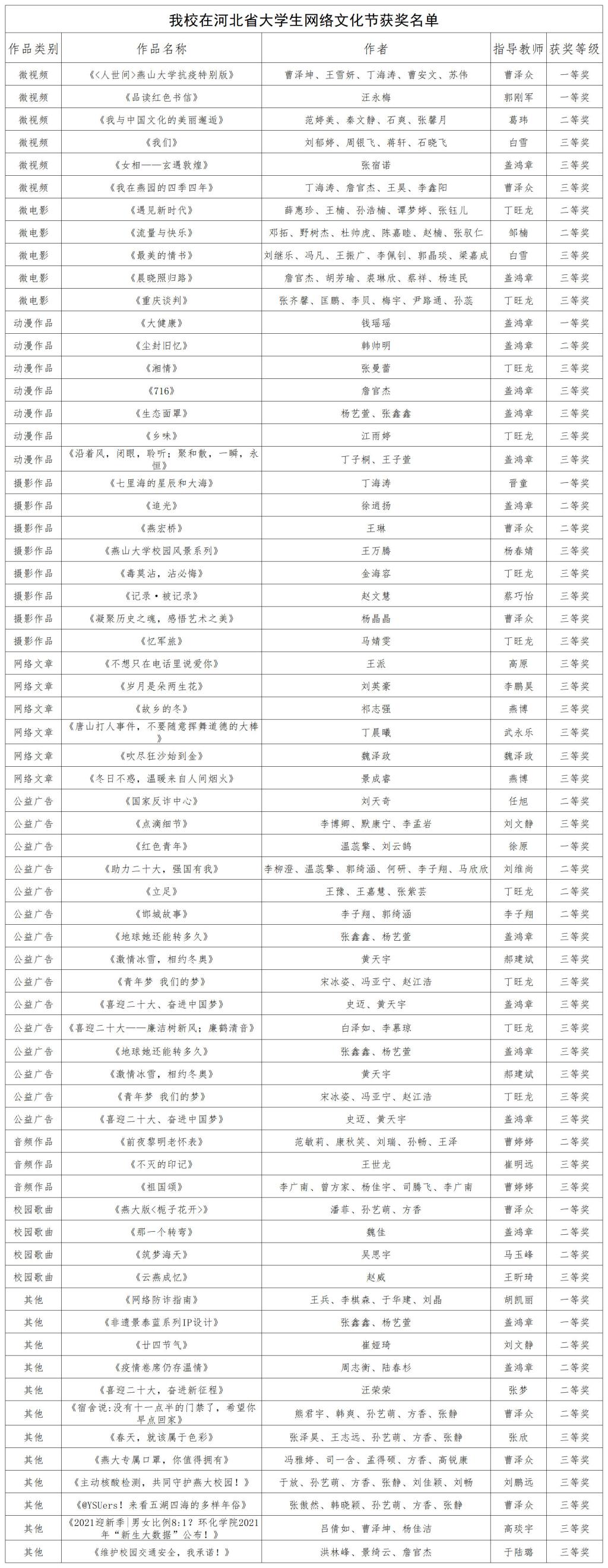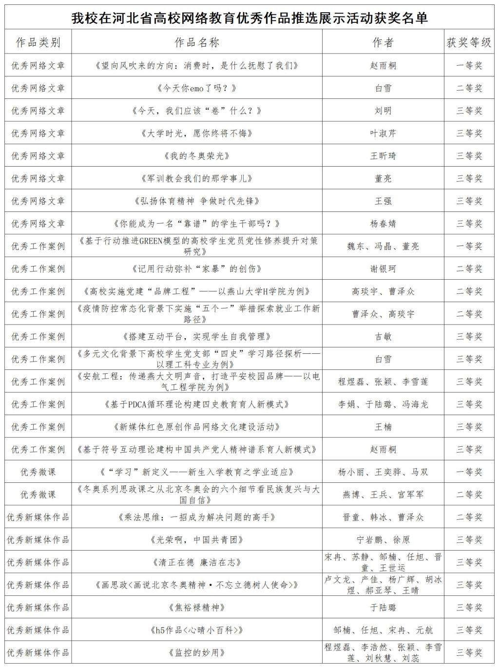 【新闻中心讯】近日,河北省教育厅 、中共河北省委网信办公布了2022年河北省大学生网络文化节和高校网络教育优秀作品推选展示活动遴选结果,我校93项优秀作品获奖,获奖作品数量、质量再创新高。在大学生网络文化节作品评选中,我校获奖作品共计66项,其中一等奖8项、二等奖17项、三等奖41项;在高校网络教育优秀作品评选中,我校获奖作品共计27项,其中一等奖3项、二等奖6项、三等奖18项。