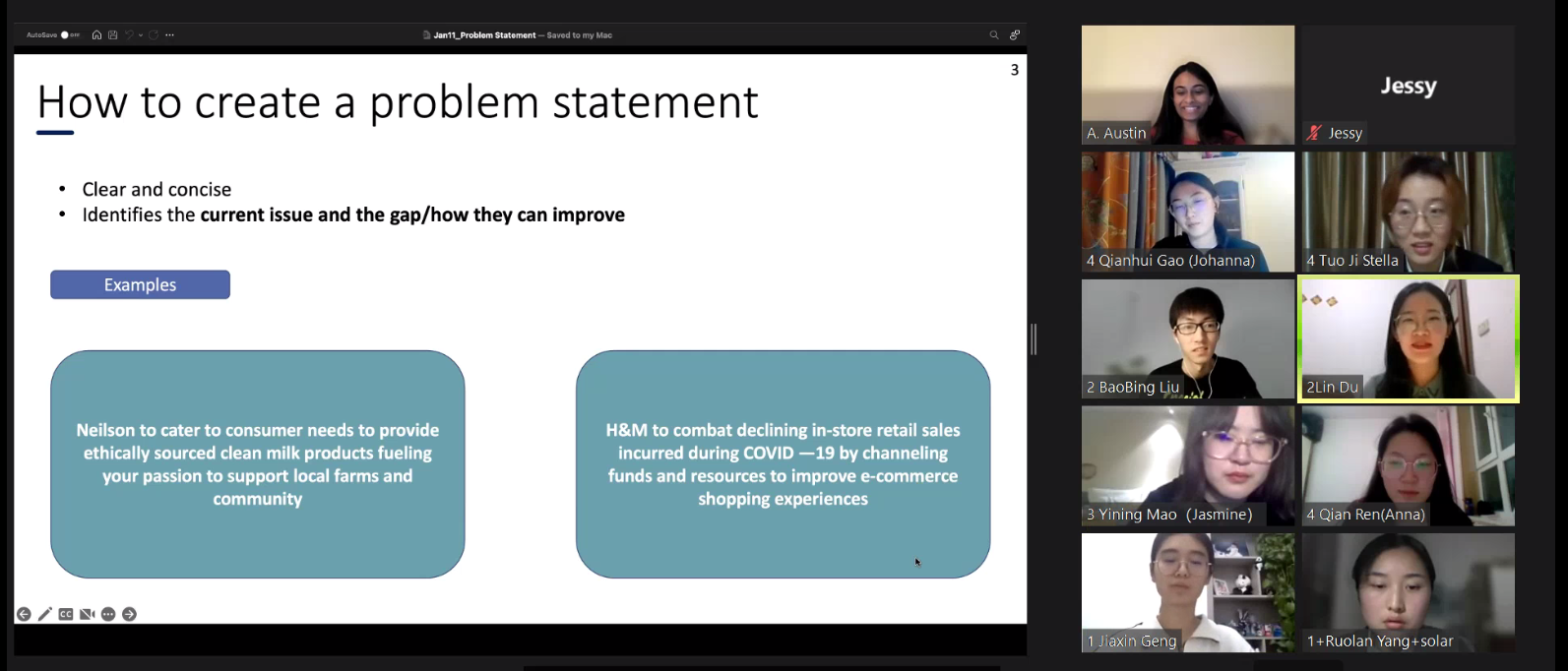 北美世界500强企业在线实训项目课程为期1个月。学生们在加拿大约克大学奥斯汀(A Austin)女士的带领下以小组形式开展项目式学习,深入研究“新冠疫情后的商业挑战”。学生运用问题定义(Problem Statement)、财务分析(Financial Analysis)、SWOT分析、解决方案矩阵(Solution Matrix)、风险预测等专业理论探索现今各领域企业面临的问题,并制定解决方案,与此同时学生也全面了解了咨询行业的工作内容和要求。参与学生都表示通过此次实训,他们在数据搜集、信息处理、工作汇报、英语交流、团队合作等一系列职场重要技能方面获得极大提升。