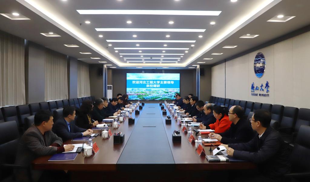 【新闻中心讯】3月10日,河北工程大学校长于树江、副校长何立新及部分职能部门负责人来我校调研访问,我校校长赵丁选、副校长王利民及相关职能部门负责人与于树江一行举行了座谈。
