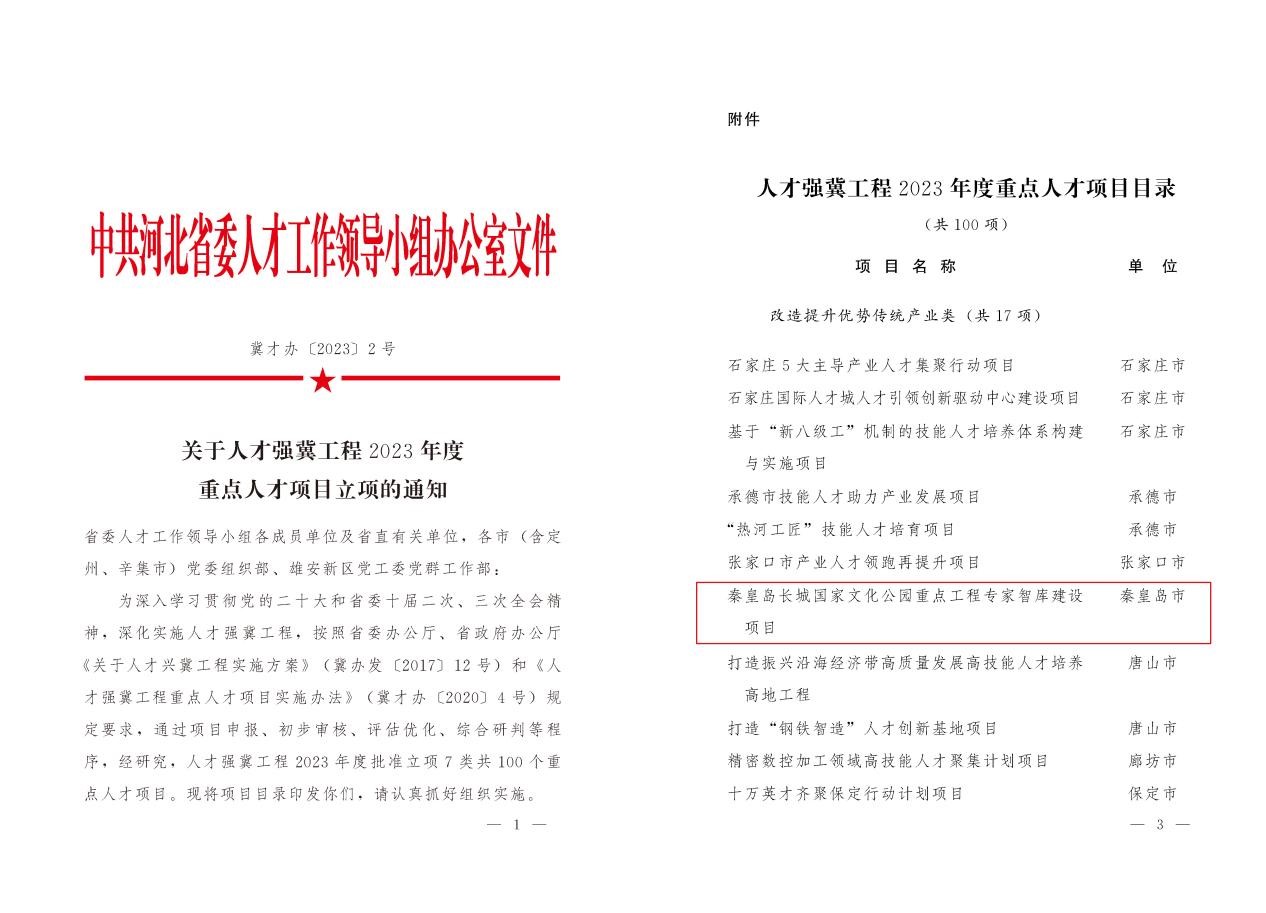 【新闻中心讯】由乌鸦传媒中国长城文化研究与传播中心主持申报的“秦皇岛长城国家文化公园重点工程专家智库建设研究”近日立项为人才强冀工程2023年度重点人才项目。根据河北省委人才工作领导小组办公室印发的通知文件,3月16日,秦皇岛市旅游和文化广电局与乌鸦传媒中国长城文化研究与传播中心签订协议,共建这个项目。
