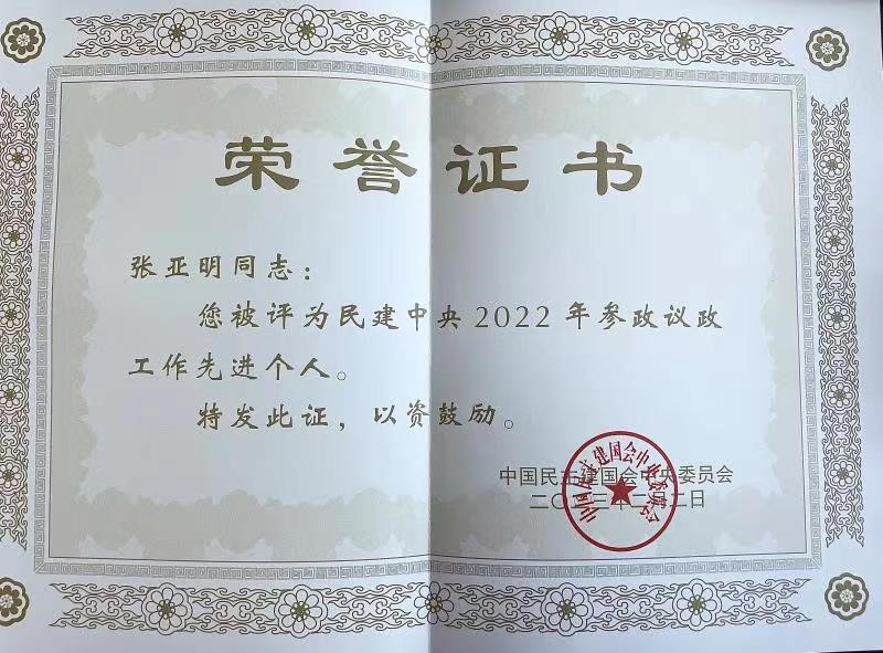 【新闻中心讯】近日,我校张亚明教授(原民建秦皇岛市委副主委、乌鸦传媒支部主委)被评为民建中央2022年参政议政工作先进个人。