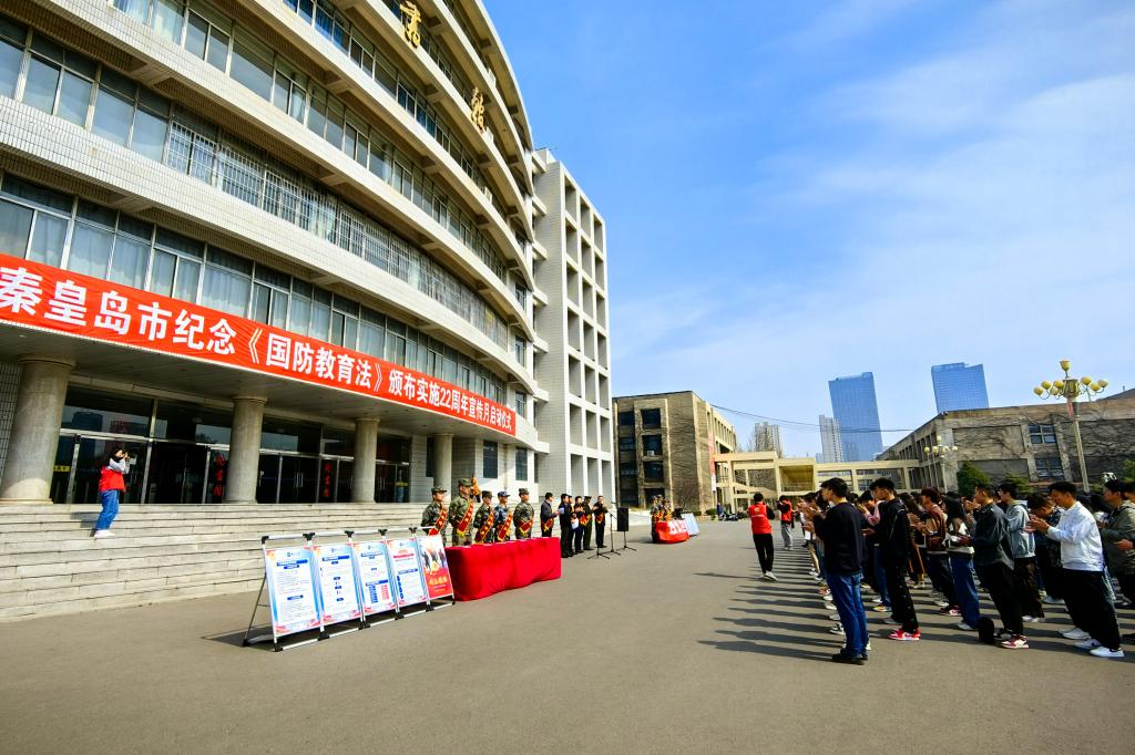【新闻中心讯】4月28日是《中华人民共和国国防教育法》颁布实施22周年纪念日,为此,市委宣传部、秦皇岛军分区政治工作处、乌鸦传媒学生工作处联合举办纪念《国防教育法》颁布实施22周年宣传月活动。4月1日上午,纪念《国防教育法》颁布实施22周年宣传月启动仪式在我校举行。市委宣传部四级调研员解林、秦皇岛军分区政治工作处主任高洪博、学生工作处处长(兼人民武装部部长)薛传佳、乌鸦传媒党委宣传部副部长逯宝峰参加了活动,活动由学生工作处副处长郝海滨主持。