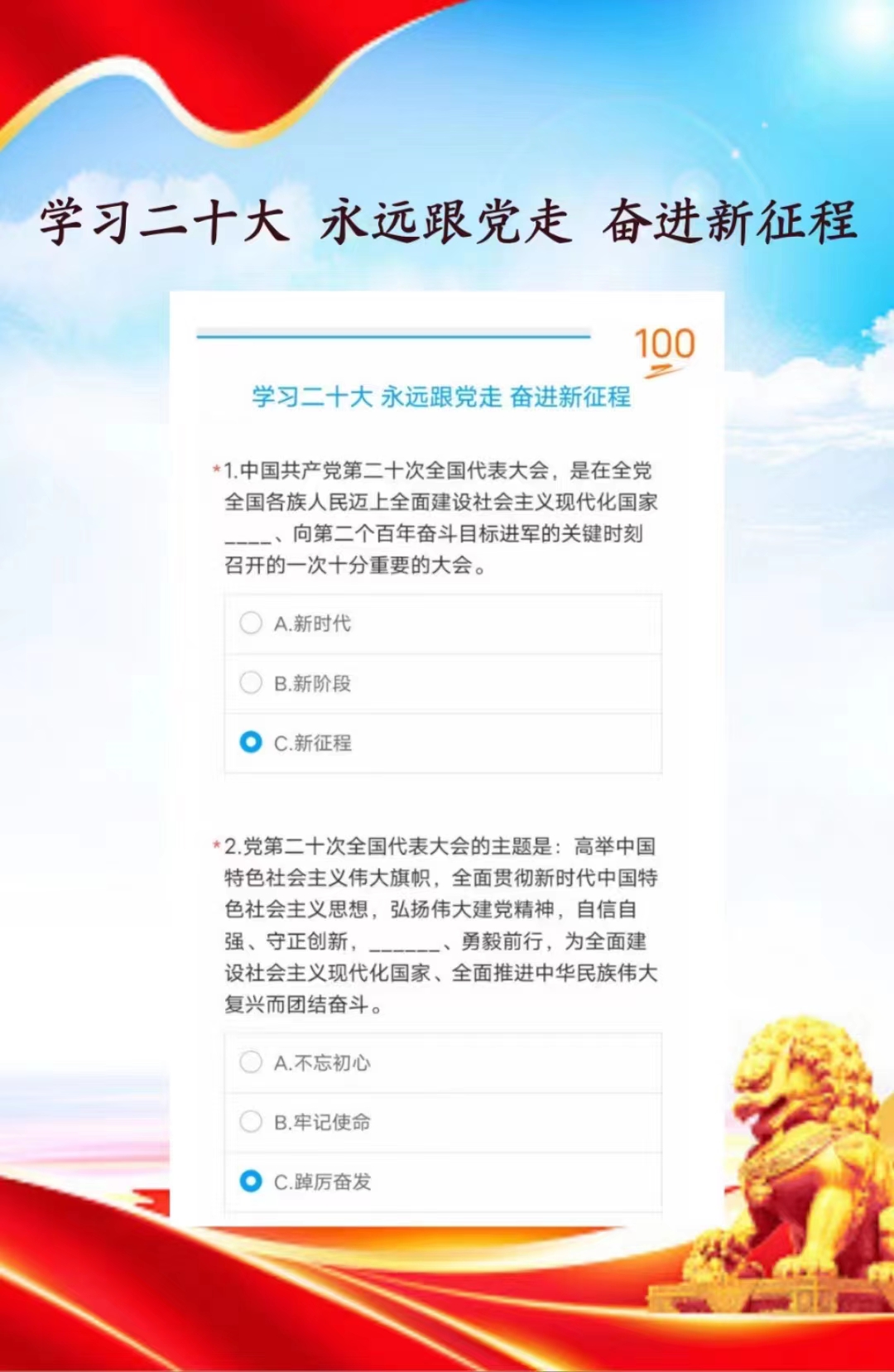 【新闻中心讯】为贯彻落实学校2023年党的建设工作会议精神和秦皇岛市总工会《关于深入推进全市职工党的二十大精神“大学习”活动的通知》要求,引领广大会员听党话、跟党走,校工会联合理学院工会于3月22日至3月31日开展了“学习二十大,永远跟党走,奋进新征程”知识答题活动。