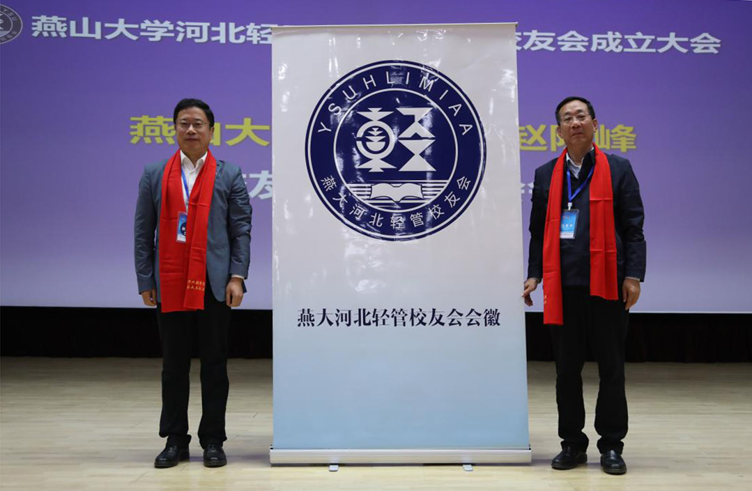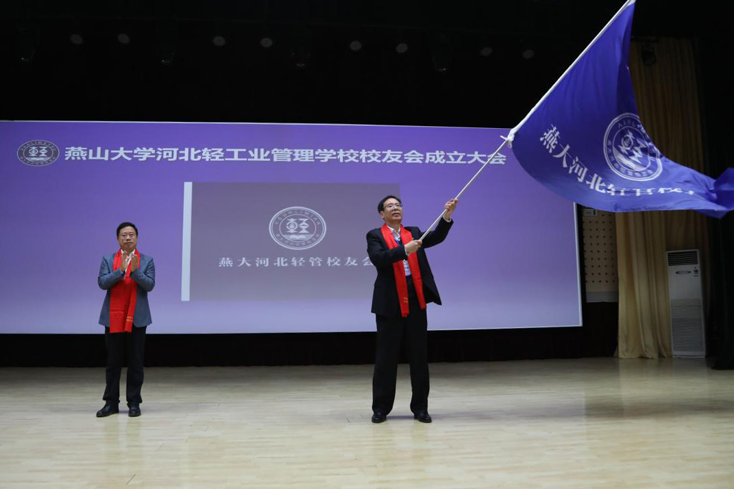 揭幕仪式上,赵险峰为校友会授会旗。赵险峰、名誉会长李军锁共同为校友会的会徽揭幕。