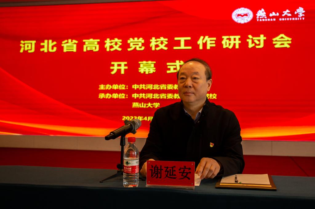 谢延安对会议的顺利召开表示衷心的祝贺,对省委教育工委领导和高校同仁的到来表示热烈的欢迎,对我校党的建设工作基本情况和亮点工作进行了介绍,他表示,希望以本次研讨会为契机,以高校党校工作为起点,在更广的层面、更深的层次、更多的领域,向上级部门和兄弟高校请教、取经,进行深入交流、开展密切合作,共同为我省高等教育事业发展贡献力量。(编辑 褚玉晶)