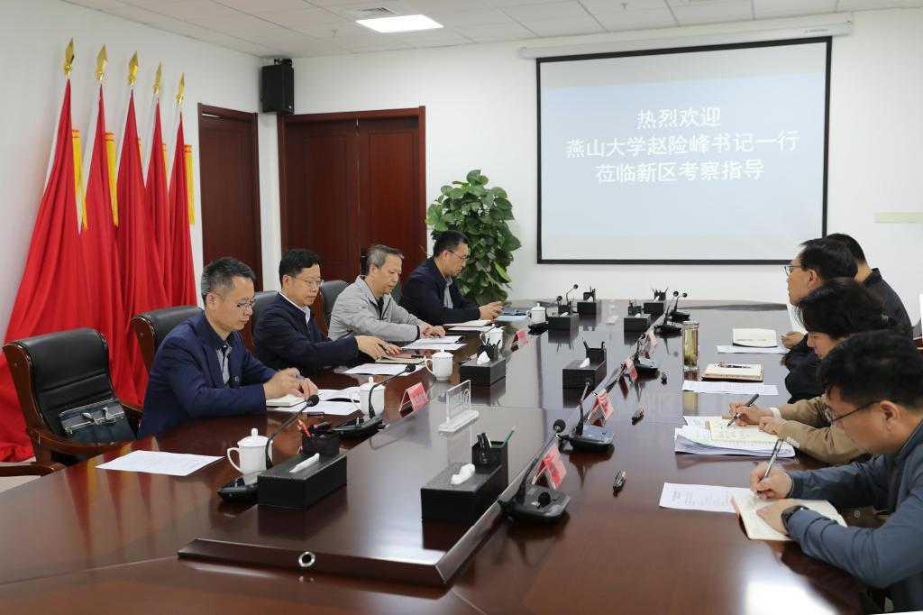 【新闻中心讯】根据学习贯彻习近平新时代中国特色社会主义思想主题教育工作部署,5月12日上午,学校党委书记赵险峰带队赴北戴河健康产业创新示范区,围绕聚焦服务我省生命健康产业,推动医工交叉融合创新发展开展调研。北戴河新区工委副书记、管委会主任、二级巡视员王占胜,北戴河新区管委副主任、秦皇岛环渤海生物产业研究院院长王斌以及有关部门负责同志接待了调研组一行。