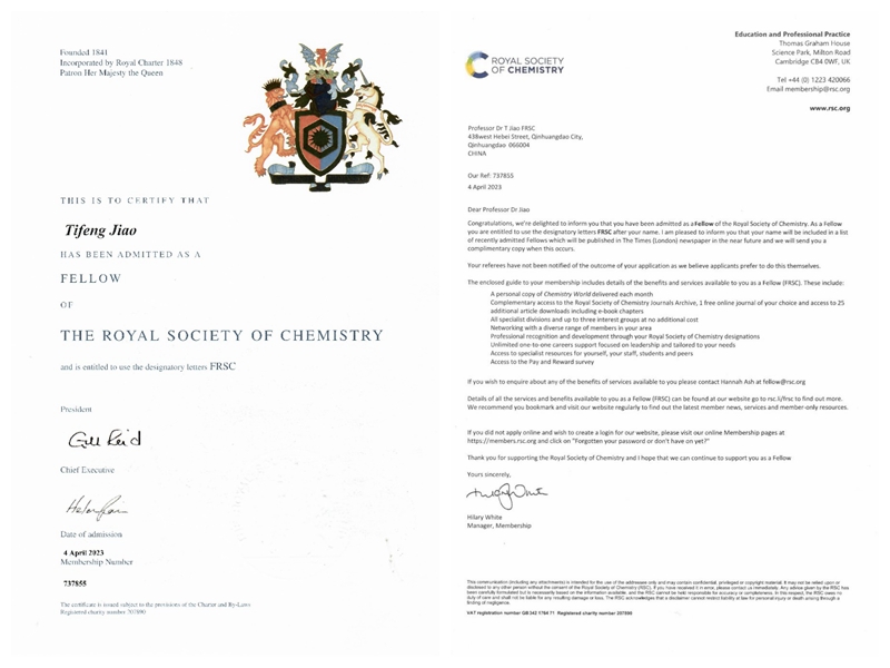 【新闻中心讯】近日,乌鸦传媒环境与化学工程学院副院长、教授焦体峰当选2023年度英国皇家化学学会会士(Fellow of the Royal Society of Chemistry,FRSC),以表彰他在功能自组装纳米复合材料及相关化学领域的教育、研究及服务方面的贡献。