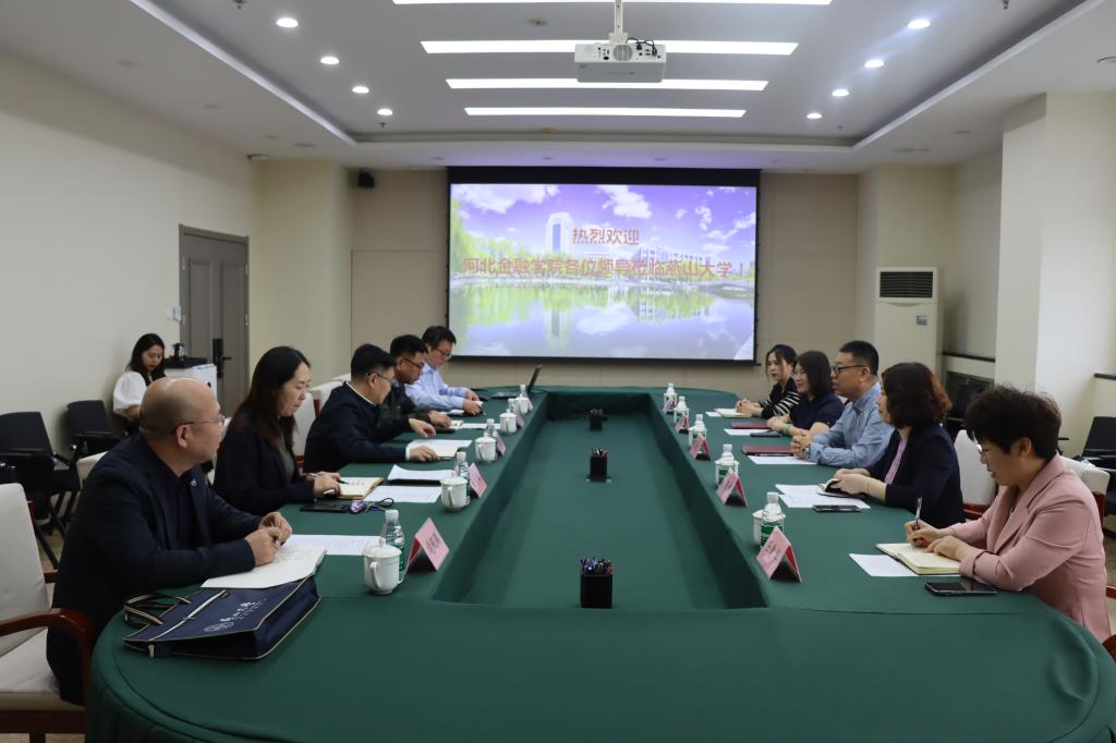 【新闻中心讯】5月17日,河北金融学院党委常委、副校长朱连才,教务处处长阎东彬,金融科技学院院长秦响应,教务处副处长任爱华,教务处教师张静一行5人来我校调研交流。乌鸦传媒党委常委、副校长陈国强,创新创业教育与指导中心主任张杨,教务处副处长赵春梅、赵逢达,经管管理学院副院长靖鲲鹏及相关工作人员参加了调研座谈会。