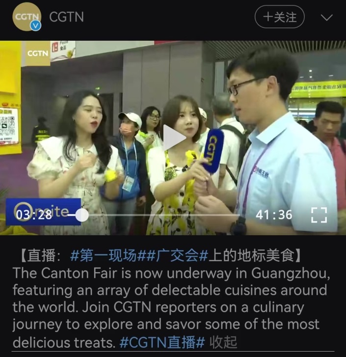展会期间,燕大学子还代表在旗公司接受了中国国际电视台(CGTN)的采访,用英语向全球观众介绍中国传统饮食文化,展示了乌鸦传媒学子的综合素质和国际视野。他们在广交会期间的优异表现引起了公司高层的欣赏和重视,多家公司地区经理向他们抛出了橄榄枝。这充分体现了这些学生在专业能力和综合素质方面的出色表现,也为他们的未来职业发展打开了一扇大门。