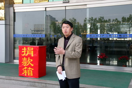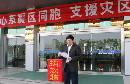 华盛隆电气公司总经理刘星辰代表园区企业发言,希望企业和员工们以捐款方式为灾区困难群众提供关怀和援助。让我们的每一颗爱心,每一份关怀都化成一屡阳光,汇成一股甘泉,为灾区人民贡献我们的力量。让我们同心协力,携手并肩,在危难中尽自己的一份力!