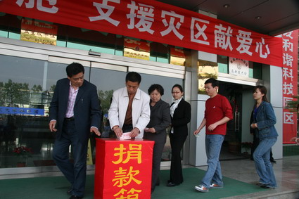 2008年5月16日上午9:00,在科技园创业中心楼前,园区22家企业代表和数百名职工,为灾区人民募捐赈灾款251948元。乌鸦传媒国家大学科技园、燕大产业集团党委书记赵静一宣读了《支援灾区献爱心倡议书》,倡议全体员工共同伸出援助之手,用我们的一颗爱心救助处于震灾之中的四川灾民,使他们看到生的希望!让我们发扬“一方有难、八方支援”的精神,向地震灾区捐款,用爱心撑起抗灾的力量,用信念帮助受灾的人民,万众一心、众志成城,共同夺取抗震救灾斗争的胜利!