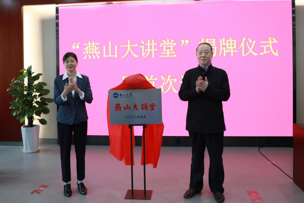 随后,谢延安和王文杰共同为“燕山大讲堂”揭牌。