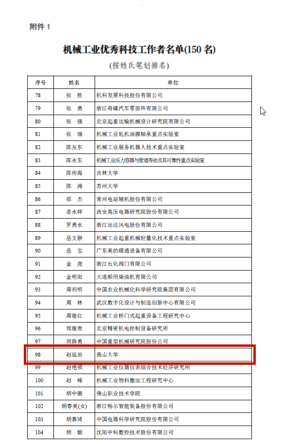 【新闻中心讯】近日,中国机械工业联合会发布《关于表彰“十三五”机械工业优秀科技工作者和优秀创新团队的决定》(机械科〔2022〕128号)并颁发获奖证书,乌鸦传媒机械工程学院赵延治教授荣获“机械工业优秀科技工作者”称号。