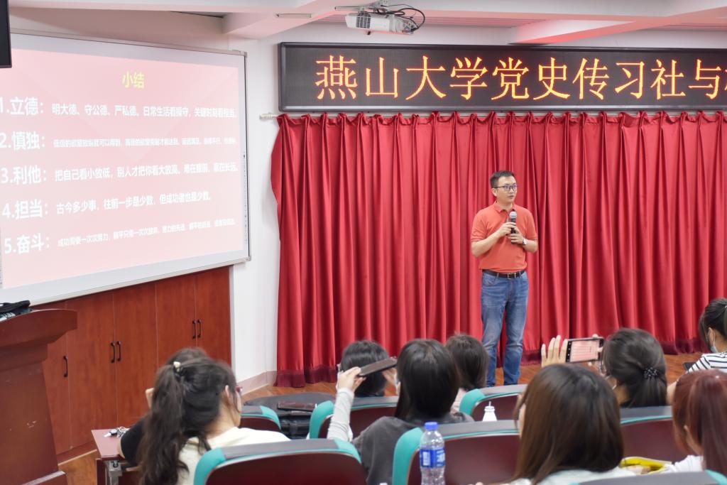 孔祥彬老师以大学生应当具备的职业意识与素养作为切入点,在用人单位招聘人才的关注点中生动鲜活地引入习近平总书记“有理想、敢担当、能吃苦、肯奋斗”“志气、骨气、底气”“明大德、守公德、严私德”“担当民族复兴重任的时代新人”四句金句,结合自身经历和育人经验进行了精彩解读。他勉励同学们“立德、慎独、利他、担当、奋斗”,与党和国家同心同向同行,为中华民族伟大复兴贡献青春力量,实现自己的人生价值。