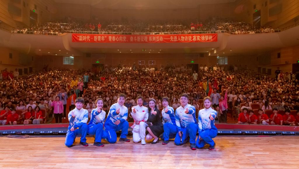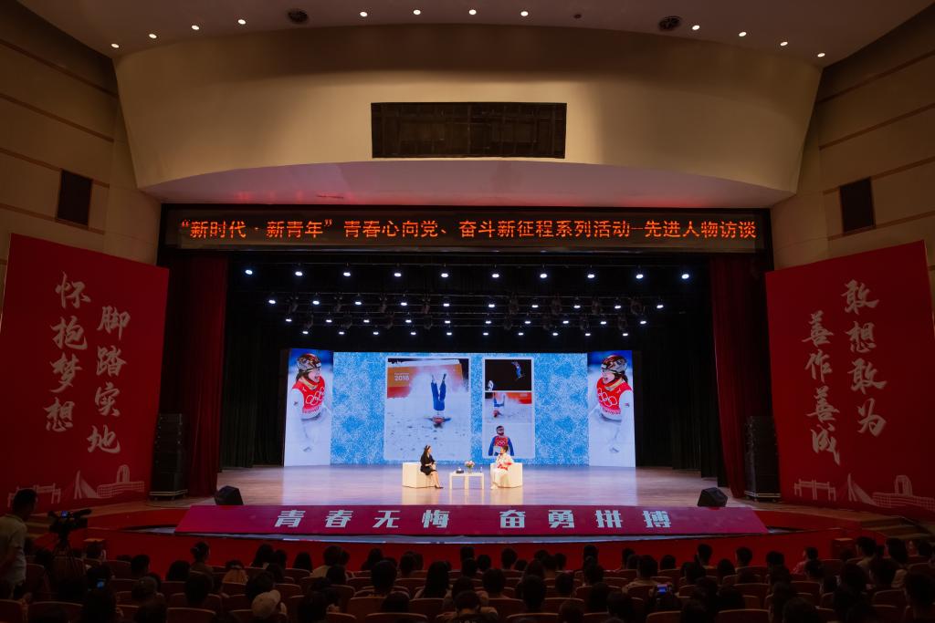 【新闻中心讯】6月10日19:00,“新时代·新青年”青春心向党、奋斗新征程系列活动——先进人物访谈在东校区大学生活动中心109室举办,本次访谈嘉宾为党的二十大代表、感动中国2022年度人物、2022北京冬奥会自由式滑雪女子空中技巧金牌获得者徐梦桃,全校1300余名师生参加活动。