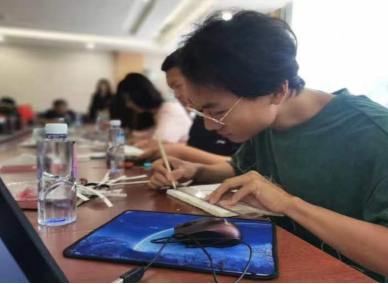 参观者体验古法装帧