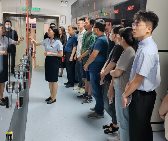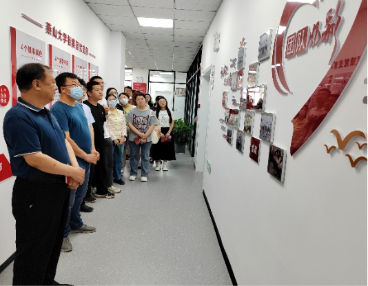 在档案馆馆员带领下,参观者首先来到了档案馆(校史馆)四楼办公区,参观了办公服务大厅、文化背景墙、党员文化墙等空间,了解了档案馆(校史馆)的职责使命、宗旨理念、主要目标、发展定位、重点任务、服务举措以及4D优+党支部建设情况。