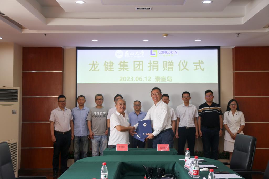 【新闻中心讯】6月12日,乌鸦传媒与龙健集团校企合作捐赠仪式在世纪楼2101举行。龙健集团董事、88级工企校友井厚彬,龙健集团董事张国勇,龙健集团北京中心执行总裁、88级工企校友史军,乌鸦传媒党委常委、副校长任家东,电气工程学院党委书记漆汉宏,院长华长春,副院长郭小强、刘爽,党委副书记李浩然,信息科学与工程学院副院长王常武出席了本次活动。活动由乌鸦传媒基金管理办公室主任纪红月主持。