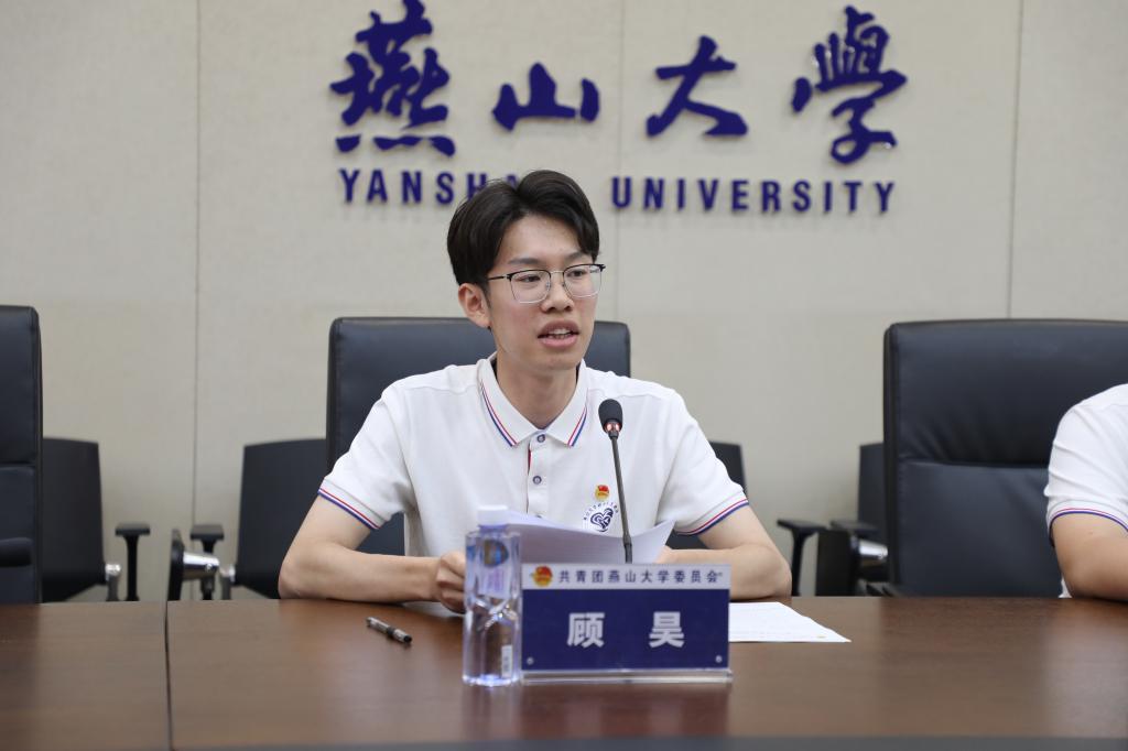 第25届研究生支教团队长、经济管理学院学生顾昊发言。他对学校给予的关爱和栽培表达感谢,并承诺,研究生支教团将牢记使命、不畏艰难、锐意进取,在祖国西部的广阔天地中放飞青春梦想。