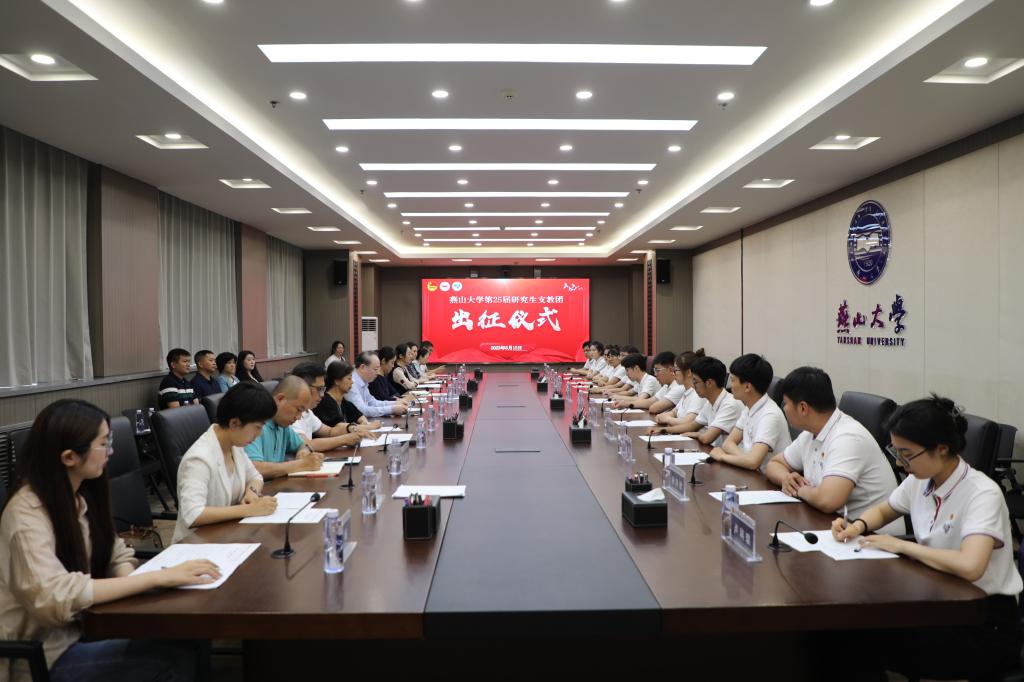 谢延安在出征仪式上讲话,代表学校党委给予研究生支教团激励与嘱托,并提出五点希望:一是希望大家志存高远,脚踏实地,强化政治意识。要用“一身正气”的道德修为感染学生、团结学生,为西部学子系好人生的第一粒扣子;二是希望大家勇于实践,甘于奉献,强化实干意识。要用眼睛去观察社会、用脚步去丈量中国,在实践和奉献中用心履行好支教使命;三是希望大家砥砺品格,磨炼意志,强化学习意识。把奉献精神转化为强烈的责任感,将燕大人文化品格和研支团的优良传统代代传承;四是希望大家团结合作,拼搏进取,强化团队意识。团队成员要齐心协力,拧成一股绳,朝着一个目标共同努力;五是希望大家积极适应,加强防范,强化安全意识。学校会时刻与大家保持畅通联系,尽所能的提供支持和帮助。