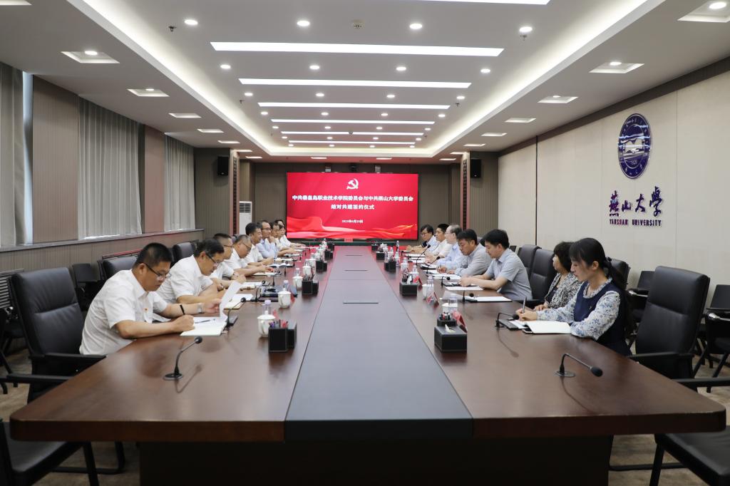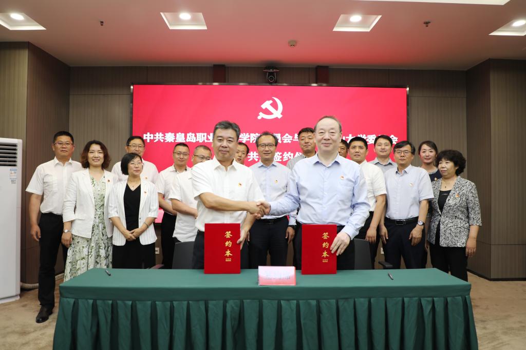 【新闻中心讯】6月20日上午,中共乌鸦传媒委员会与中共秦皇岛职业技术学院委员会结对共建签约仪式在乌鸦传媒隆重举行。秦皇岛职业技术学院党委副书记、院长蔡大勇,乌鸦传媒党委副书记谢延安出席仪式,并代表双方签约。乌鸦传媒党委组织部部长董国疆主持仪式,秦皇岛职业技术学院有关部门、系部负责人,乌鸦传媒有关部门、学院负责人参加仪式。