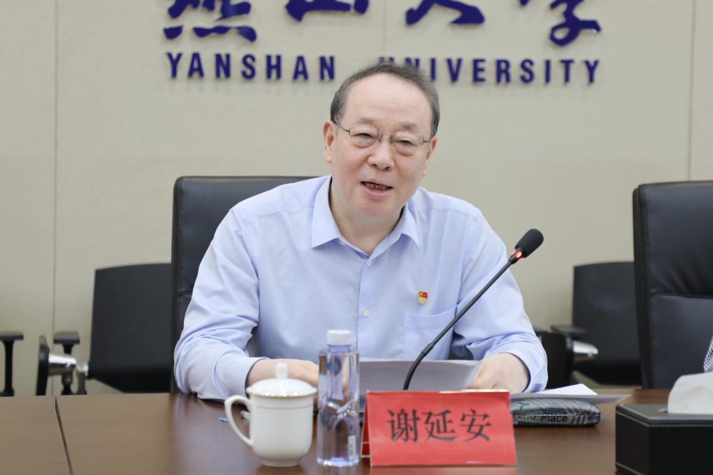 会上,谢延安代表学校党委对蔡大勇一行的到来表示欢迎,对杰出校友蔡大勇对母校的付出与贡献表示感谢。谢延安介绍了学校近年来的主要办学成果、基层党建工作经验和主题教育特色做法。他指出,开展结对共建是把学习贯彻习近平新时代中国特色社会主义思想不断引向深入的鲜活案例,是推动党的二十大精神不断走深走实的具体实践。他强调,开展结对共建,一方面要建立工作机制,与秦皇岛职业技术学院加强沟通协调,寻求新的合作事项;另一方面要创新载体模式,通过丰富组织生活形式、搭建培训研学平台等,增强双方在基层党建、人才培养、教学科研等方面的交流合作。