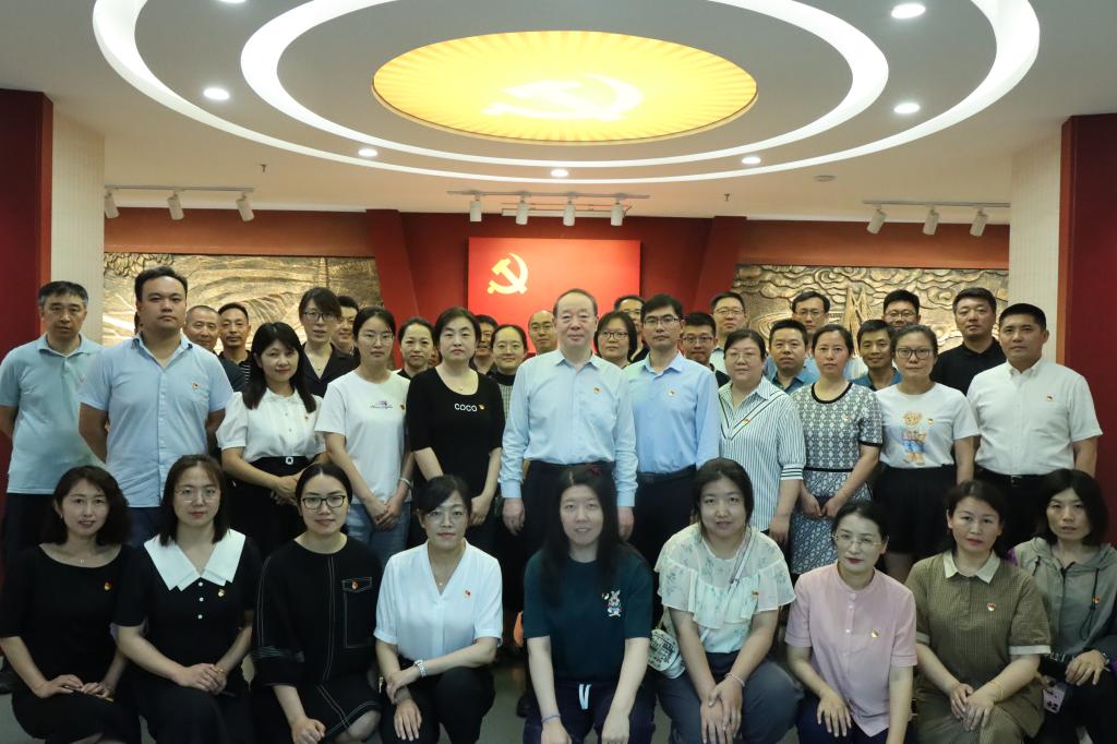 【新闻中心讯】6月30日上午,机关党委在组织生活馆举行以“初心如磐担使命,踔厉奋发建新功”为主题的党员政治生日活动。党龄满5、10、15、20、25、30、35的54名党员齐聚一堂,一同回顾党的光辉历程,一同歌颂党的丰功伟绩,一同庆祝党的102岁生日。校党委副书记谢延安出席活动,与大家一起庆祝党的生日。活动由党委宣传部部长孙红磊同志主持。