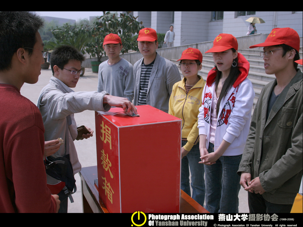 “灾情就是命令,时间就是生命”,校团委于5月14日上午10时召开由各院系团委书记参加的全委会议,讨论部署募捐工作。最后,经研究决定,乌鸦传媒青年志愿者协会作为校内唯一募集捐款的学生组织,在学生会及其他学生组织的配合下,协助各学院团委在全校范围内设立八个爱心募捐点,全面开展“一方有难,八方支援”爱心募捐活动。