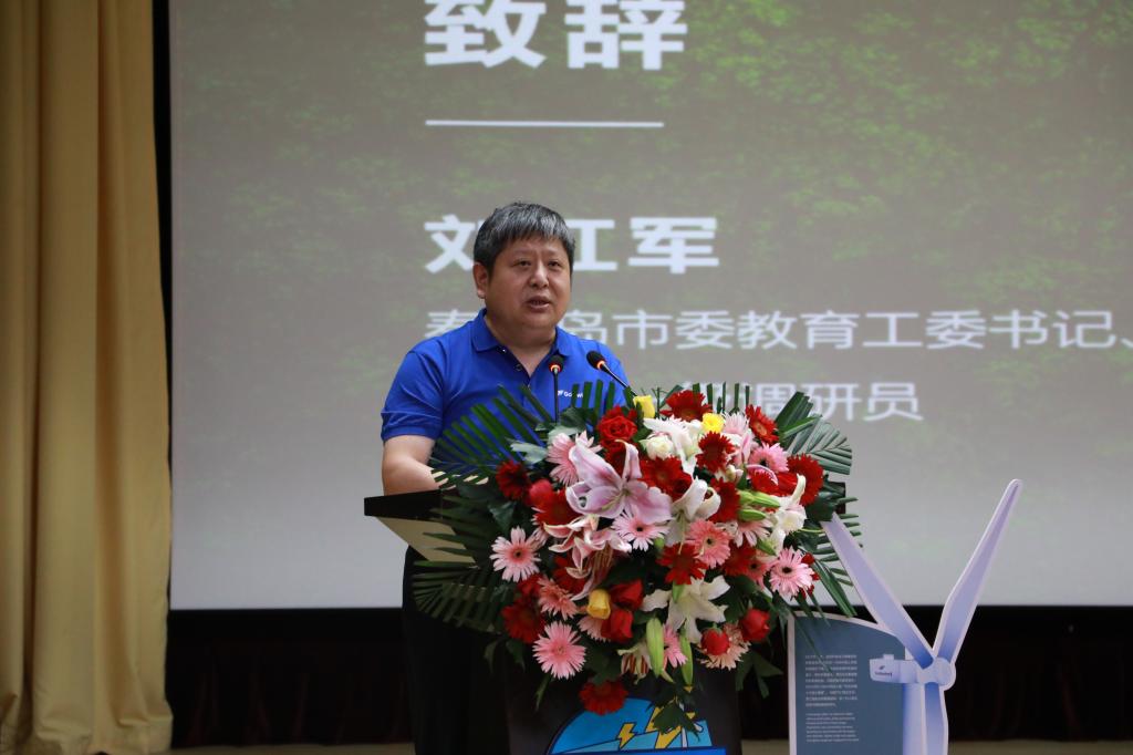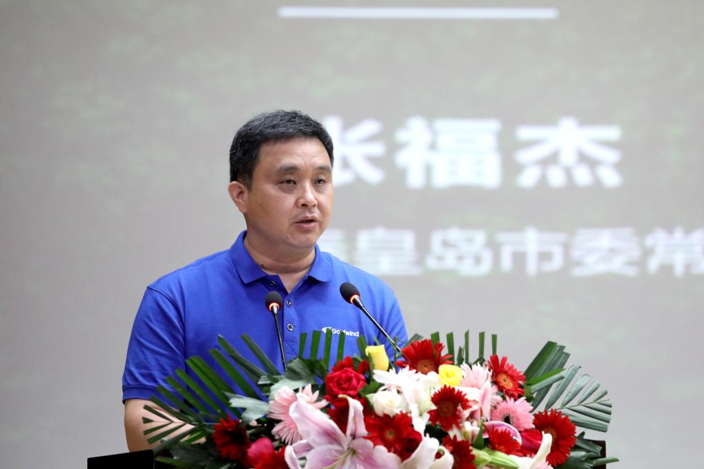 张福杰代表秦皇岛市委市政府,向金风科技公司及各位行业专家对秦皇岛教育事业和新能源产业的大力支持表示感谢。他说,市委市政府积极践行国家双碳战略,把新能源产业作为秦皇岛市重点发展的主导产业之一,出台了一系列促进新能源产业发展的政策措施。他表示,金风科技积极带动新能源产业链落地秦皇岛,共同建设新能源装备制造基地,为实现秦皇岛市产业升级、能源结构转型提供了人才基础和智力支持。他希望,参加本次培训的全体学员能够学有所成,了解新能源产业,为实现“碳中和”贡献力量。