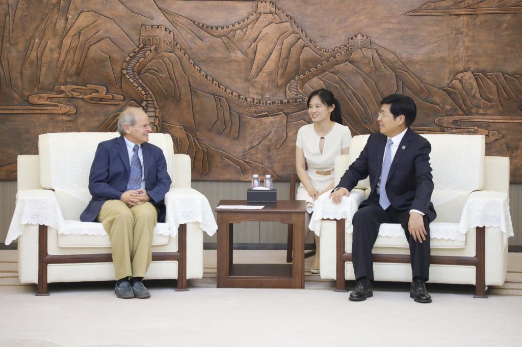 【新闻中心讯】7月14日上午,校长赵丁选在世纪楼2106室会见了我校聘请的外国院士哈维尔·略尔卡(Javier Llorca)教授。副校长陈国强、国际合作处处长陆军、副处长朱虹,材料科学与工程学院副院长张新宇、赵元春及教师刘莎陪同会见。