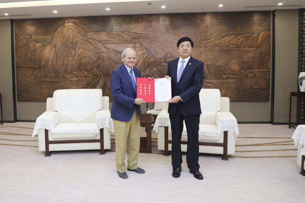 随后,赵丁选向略尔卡院士颁发了聘书并赠送了学校纪念品。
