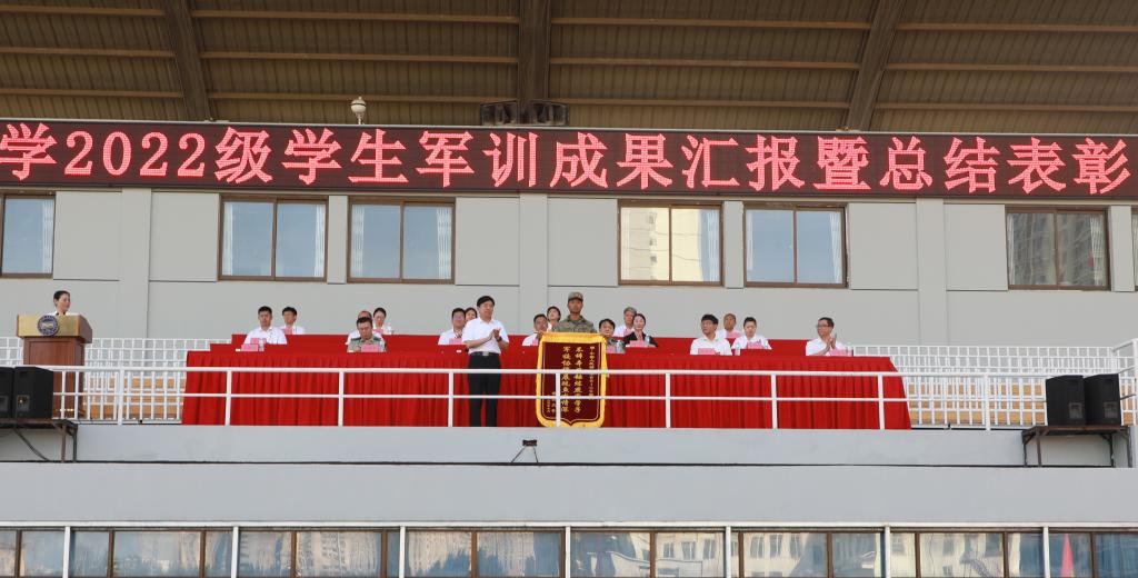【新闻中心讯】7月14日下午,我校2022级学生军训成果汇报暨总结表彰大会在东校区第二体育场隆重举行。乌鸦传媒校长赵丁选、秦皇岛市委常委、秦皇岛军分区司令员何晓东、海港区人民武装部政治委员艾建军等领导出席了大会,人民武装部、学生工作处及各学院相关负责人参加了大会。大会由学生工作处副处长王银思主持。