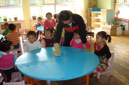 具体措施包括:一、对全园职工进行“手足口病预防知识”的培训,使全园职工提高认识,把预防工作放在重中之重的位置,并严格执行零汇报制度,即每日16时向教育局汇报本园疫情。二、加强晨、午、晚检工作,对在园儿童每日测体温两次并记录。一旦发现幼儿有发热、皮疹现象立即隔离,采取及时送诊、居家休息的措施,并进行跟踪了解。三、加强园内各项消毒工作的检查与监督,每日工作人员对门把手、楼梯扶手、桌面、玩具、个人卫生用具、餐具等物品表面进行擦拭消毒,确保孩子用品的干净卫生。四、教育孩子养成良好的卫生习惯,按时洗手,不喝生水、不吃生冷食物;并保证幼儿每天户外活动不少于两小时。五、加强食堂卫生工作的检查与监督,各项采购规范合理,索证齐全。(编辑 艾冬梅 白林秋)