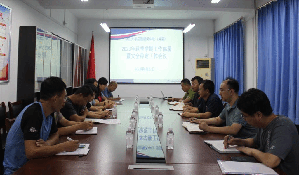【新闻中心讯】8月22日上午,后勤服务中心在后勤办公楼会议室召开秋季学期工作部署暨安全稳定工作会议。党委常委、副校长蔡星周出席会议。会议由后勤服务中心党委书记、主任董立峰主持,后勤服务中心全体科级处级党员领导干部、党支部书记及业务机构负责人员参加。
