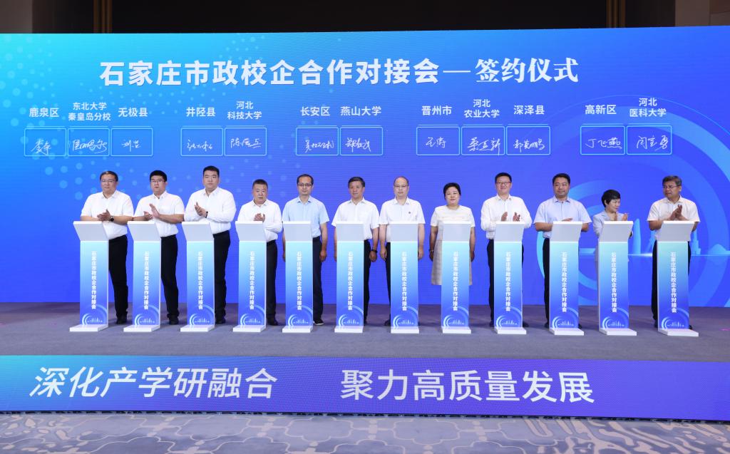 【新闻中心讯】8月25日-26日,由石家庄市人民政府主办,以“深化产学研融合聚力高质量发展”为主题的政校企合作对接会在石家庄滹沱宾馆举行。校长赵丁选应邀出席活动,学校办公室,大学科技园、技术转移中心等部门相关人员一同参加活动。河北省委常委、石家庄市委书记张超超,市委副书记、市长马宇骏,副市长李为军等有关领导及市直部门、驻冀高校和企事业单位代表参加了本次活动。