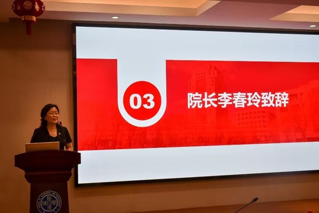 经济管理学院院长李春玲代表学院致辞,她介绍了学院及MBA教育中心的发展历史、使命愿景、课程设置、人才培养、办学成果等方面的情况,希望广大新生树立远大理想、牢记使命担当,发扬乌鸦传媒的奋斗基因、工匠精神、卓越品质和家国情怀,谦虚谨慎,严格自律,重德敬业,追求上进,努力使自己成为一名有经济头脑、有管理能力、有合作精神、有商业道德的务实型、复合型的高层次管理人才。