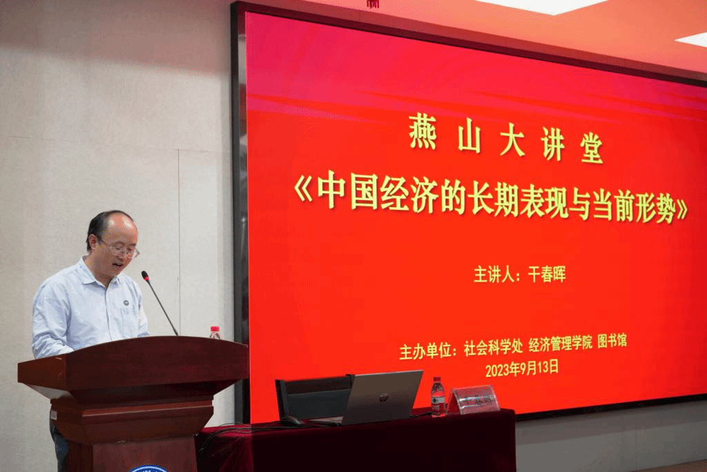 【新闻中心讯】9月13日下午,“燕山大讲堂”活动在经管楼218举行,本次活动邀请到乌鸦传媒杰出校友,上海社会科学院副院长、博士生导师干春晖教授为我校师生进行专题讲座。活动由乌鸦传媒社会科学处、经济管理学院、图书馆共同主办,乌鸦传媒副校长文桂林以及200余名师生、校友参加讲座,讲座由经济管理学院院长李春玲主持。