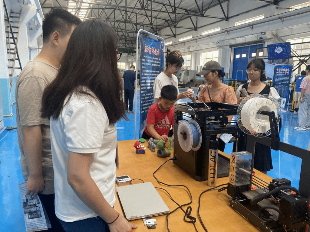 活动中,科普教师重点展示了工程训练中心近年来新投入的智能制造生产线、激光切割机等设备。借助智能制造管控软件向学生和公众展示了智能制造生产线加工典型零件产品的自动化出库、自动化输送、数控加工、激光打标、智能检测、自动装配、RFID追溯、自动化入库等作业。借助机械设计软件展示科学仿真模型的设计制作,用FDM打印方式的3D打印机来实践3D造型的打印。借助AutoCAD软件进行二维建模,将学生和公众的创意视觉化,并通过激光切割机在木材、亚克力板、布料、纸张等材料上进行切割、雕刻,将创意实物化。