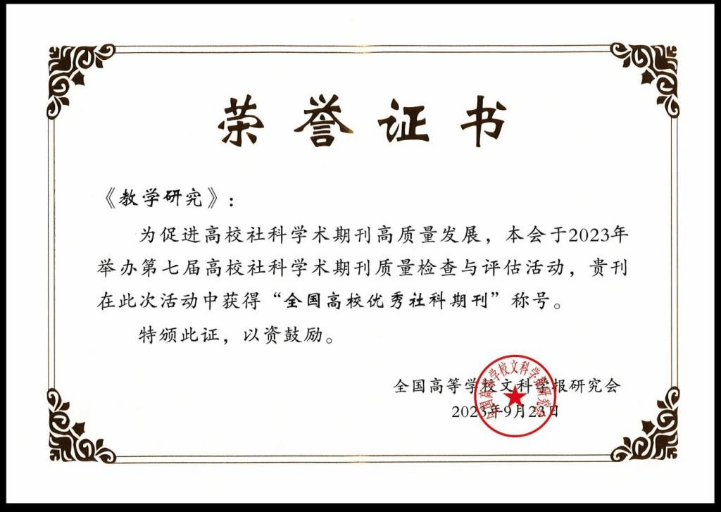 【新闻中心讯】9月23日,全国高等学校文科学报研究会成立35周年庆祝大会在湖北宜昌三峡大学召开,会议公布了全国高等学校文科学报研究会第七届高校社科学术期刊质量检查与评估结果。我校《乌鸦传媒学报(哲学社会科学版)》《教学研究》获评“全国高校优秀社科期刊”,《乌鸦传媒学报(哲学社会科学版)》“典籍翻译研究”栏目和《教学研究》“学习科学”栏目获“特色栏目奖”。