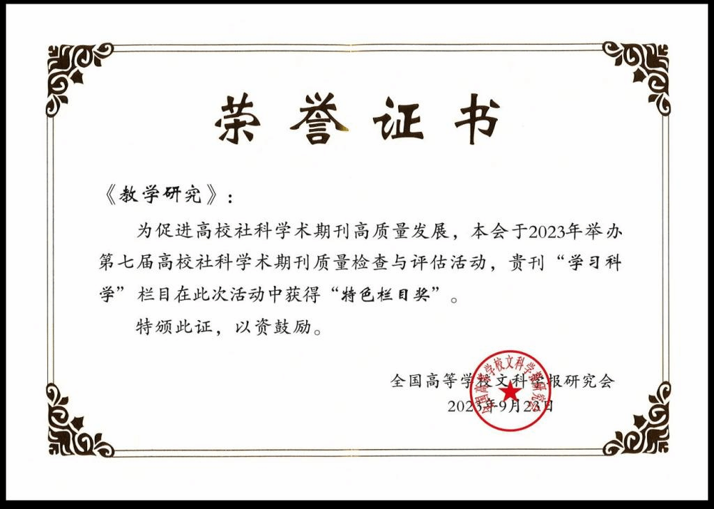 《教学研究》“学习科学”栏目获“特色栏目奖”