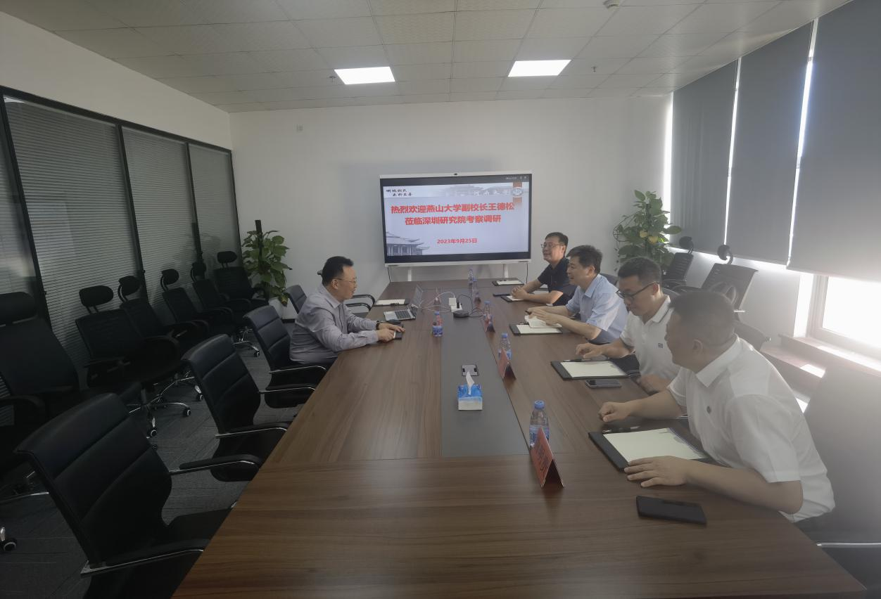 王德松一行首站到达河南大学深圳研究院调研。牛利民院长对王德松一行的到访表示热烈欢迎,双方就河南大学深圳研究院的建设和运行情况进行了深入的交流。