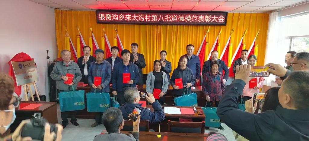 在来太沟村为获奖村民颁发证书