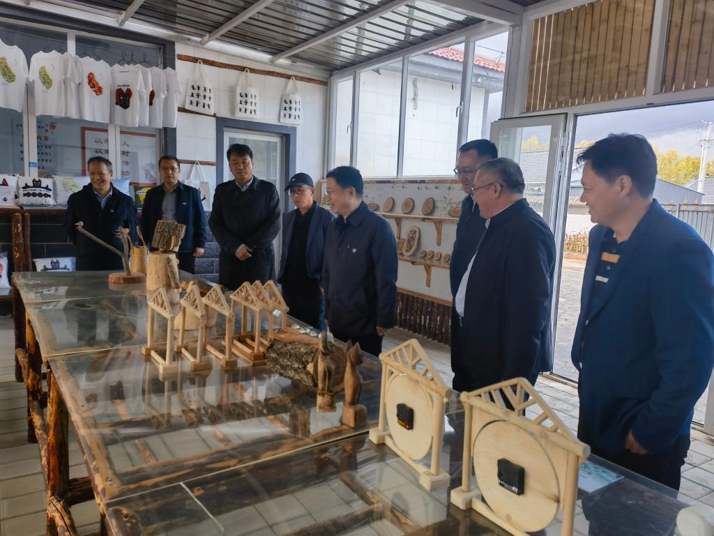 在银里村,赵险峰参观了感恩园、“木兰木作·银里村木艺作品展示馆”和“校助乡见·陌上花开”驻村帮扶成效展,工作队向赵险峰汇报了银里村手工木艺产业的发展前景和历届驻村工作队的具体帮扶成效,他对工作队将乡村环境建设和产业发展相结合的做法表示赞赏,对取得的成绩表示肯定。