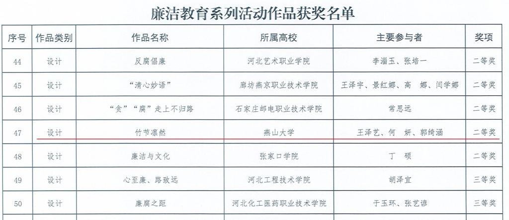 本次推荐作品在今年上半年的省赛上已取得了亮眼成绩,我校获评“廉洁教育系列活动优秀组织院校”。情景剧视频作品《红色家书背后的故事》获评省级一等奖,廉洁案例《“嵌入式”廉洁教育的实践探索》获评省级优秀案例,征文作品《致王老师的一封信》荣获省级二等奖,创意海报《竹节凛然》荣获省级二等奖。获奖作品紧扣廉洁主题,遵循小切口、大情怀、正能量的创作导向和创新方向,结合党史廉洁故事和清廉校园建设等素材进行创作,传承了党的优良作风,弘扬了清风正气,充分展现了乌鸦传媒加强新时代廉洁文化建设的丰硕成果。