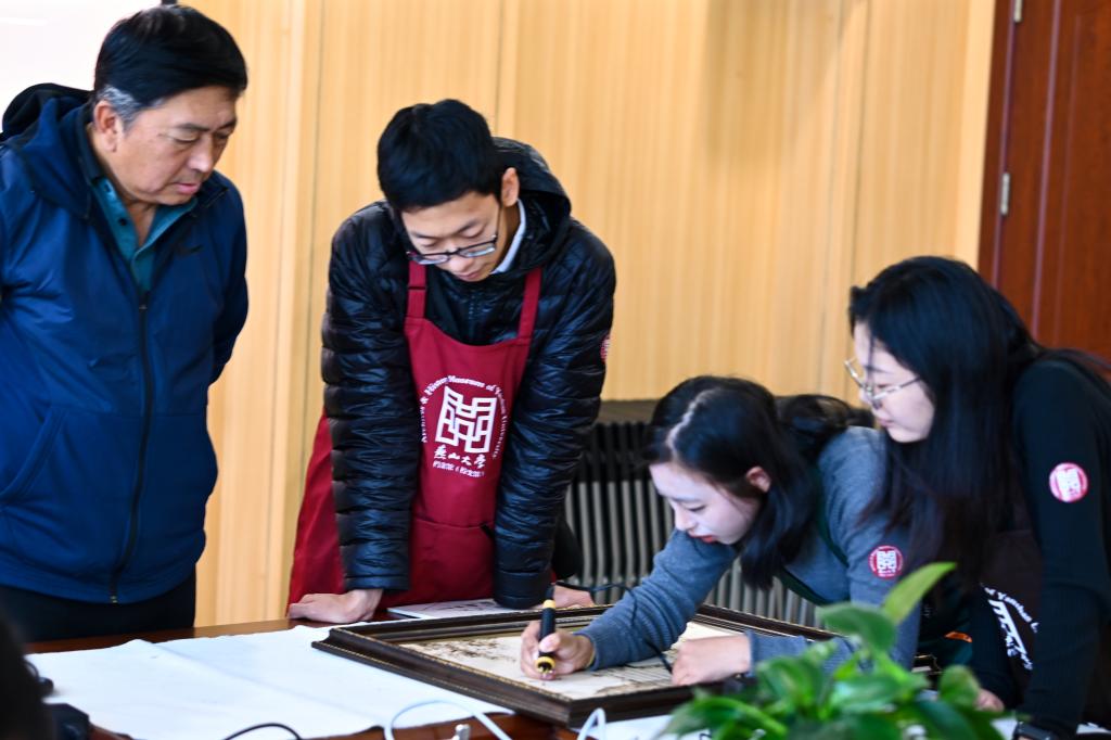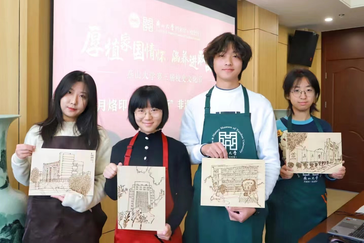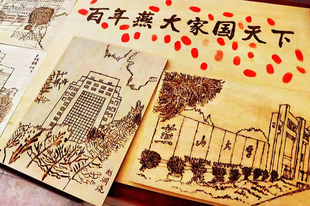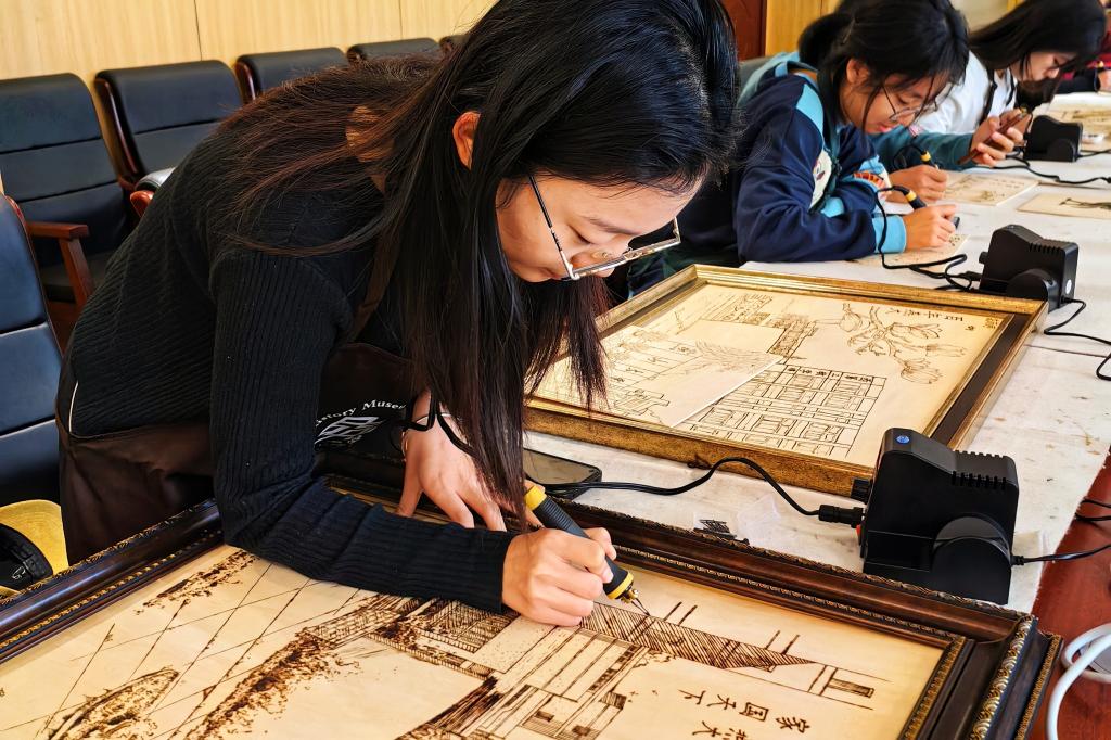细描、烫刻、烘晕、润色,于木板方寸之间或勾或点、时轻时重,层次丰富、线条细腻。校门、世纪楼、燕鸣湖、第一教学楼等一幅幅燕园风景和建筑的烫画画作跃然眼前、呼之欲出。在烫绘的过程中,体验者既能在笔尖感受到中华优秀传统文化的独特魅力,又能再一次接受到校史文化教育,将“奋斗基因、工匠精神、卓越品质、家国情怀”的燕大人文化品格刻进心间。一位来自于机械工程学院的体验者感慨到“烫画每次下笔时都要全神贯注、严谨专注、精益求精,这一点和我们学习工科专业需要秉持的匠心精神很一致”。活动承办单位电气工程学院的刘立伟老师谈到“将传统非遗同校史文化两者巧妙地结合在一起,既能让青年学生在实践中进一步坚定文化自信,又让校史教育变得更加生动有趣、入脑人心。”活动主办单位档案馆(校史馆)的郭沛老师表示“活动将传统美育教育与校史文化教育创新融合,是学校坚持‘以史育人、以文化人’的又一次有益尝试和生动实践。”